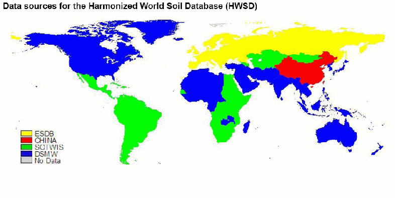 Agriculture: Supporting sustainable agriculture and combating desertificationThe Harmonized World Soil Database (HWSD) as a First Step Towards a Global Soil Information SystemRecognizing the critical importance of soil observations to GEOSS, the global soil survey community is uniting to contribute to GEO (Task DA-09-03: Global Data Sets, sub-task Global Soil Data). This sub-task is co-led by a group of soil institutions, including the European Commission Joint Research Centre, and the International Soil Reference and Information Centre (ISRIC)-World Soil Information in The Netherlands is the point of contact (vincent.vanEngelen@wur.nl). The purpose of this effort is to support the development of a global soil information system that builds upon the work of ongoing and completed projects. The system will incorporate data from global, regional, and national soil data projects into a coherent system using a common dictionary – to support implementation of major multilateral environmental agreements (e.g., United Nations Framework Convention on Climate Change, United Nations Convention to Combat Desertification, and Convention of Biological Diversity) and provide harmonized and policy-relevant information to users at the global, regional, and national level. The freely accessible system will deliver web-based services on soil information. The Food and Agriculture Organization of the United Nations (FAO) and the International Institute for Applied Systems Analysis (IIASA) have taken the first step towards a fully operational global soil information system. They took the initiative of combining the recently collected volumes of regional and national updates of soil information with the information already contained within the 1:5 M scale digital FAO-United Nations Educational, Scientific and Cultural Organization (UNESCO) Digital Soil Map of the World (DSWM; FAO/UNESCO 1995, 2003), to create a new comprehensive Harmonized World Soil Database (HWSD). HWSD uses four distinct sources of data (see Figure 1):