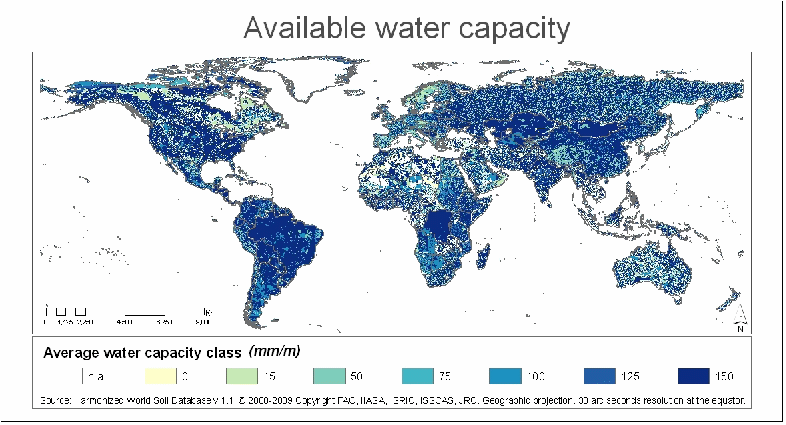 Figure 2. Soil Moisture Holding Capacity Derived from Soil Properties in HWSD |