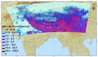 - Observations of the terms of the water balance: precipitation, meltwater from snow and glaciers, changes in soil water content and evaporation for a period of three years are generated by integrating ground and satellite measurements on weekly and monthly basis. Radiative transfer models and algorithms are under development for different regions of the electro-magnetic spectrum.
