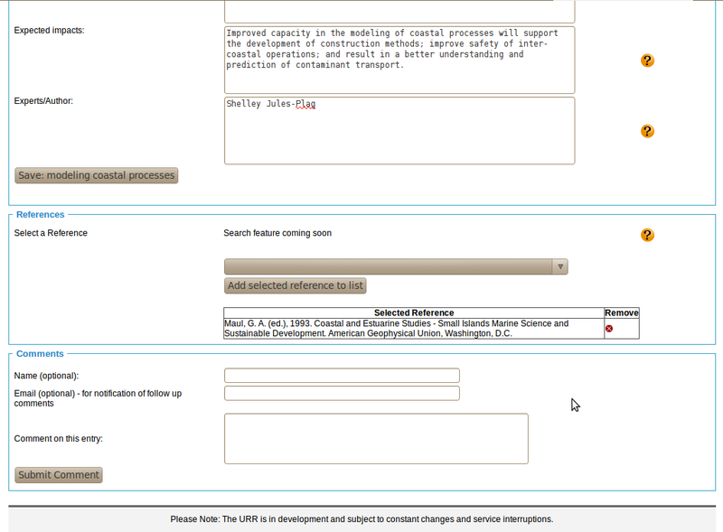 Linking to references Once we have completed and saved the entry, the form fields for references and comments are active. We select one or more relevant references from the list of available references. The number of reference that can be linked to an entry is not limited. References can be removed by clicking on the 'delete' icon. |