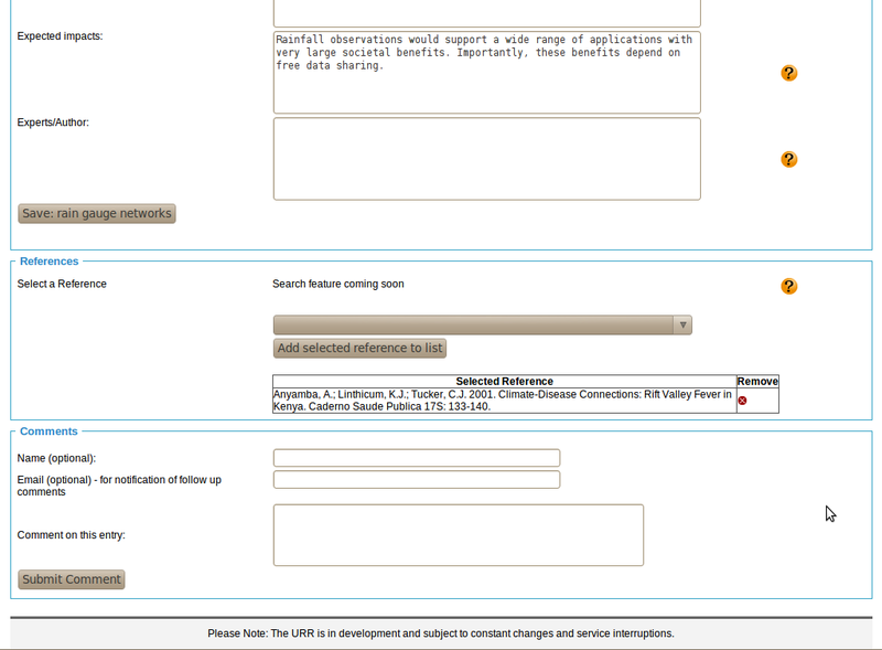 Linking to references Once we have completed and saved the entry, the form fields for references and comments are active. We select one or more relevant references from the list of available references. The number of reference that can be linked to an entry is not limited. References can be removed by clicking on the 'delete' icon. |
