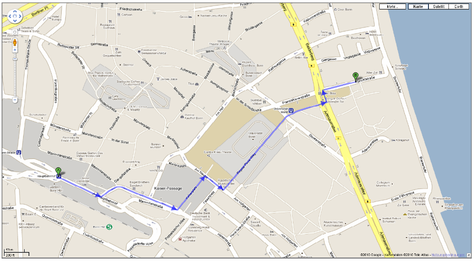 - get off at station Bonn – Brüdergasse/Bertha v. Suttner Platz, cross the street,