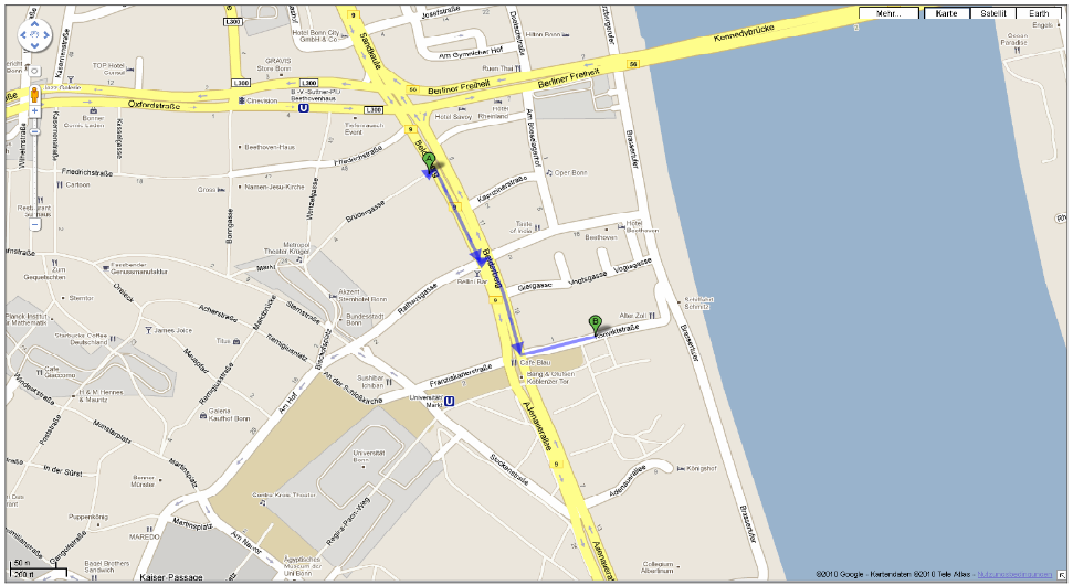 the Rheinische Friedrich-Wilhelms-Universität Bonn to your left. After 100 m
